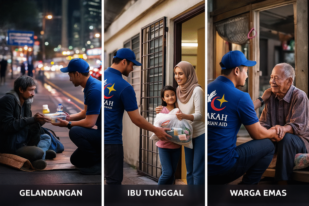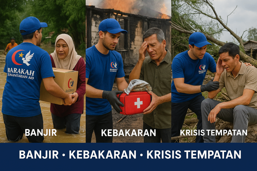 Bantuan Dalam Negara Food Bank Barakah Bantuan rumah dhuafa’ & baik pulih rumah Bantuan pendidikan pelajar tahfiz dan pondok Bantuan kesihatan & rawatan kecemasan Bantuan banjir, kebakaran & krisis tempatan Program outreach untuk gelandangan, ibu tunggal & warga emas